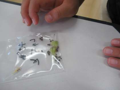 ヒマワリやホウセンカ、育ててきた野菜の種を収穫しました。
