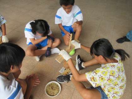 高学年の子供たちが火起こしの練習に取り組んでいました。今日も火をつけるところまではいきませんでした。自分たちの起こした火をつかって、野外炊飯を成功させようと、諦めない子供たちです
