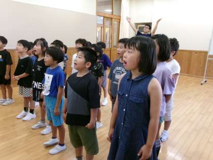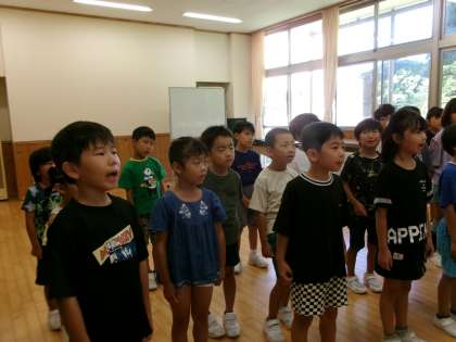 学習発表会に向けて、1〜3年生で「にじ」を練習しました。
