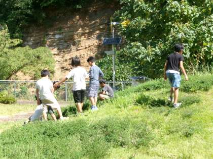 きらきらタイムには、芝生広場の遊具で遊んだり、虫を探したり、鉄棒の練習をしたりするなど、思い思いに過ごしています。