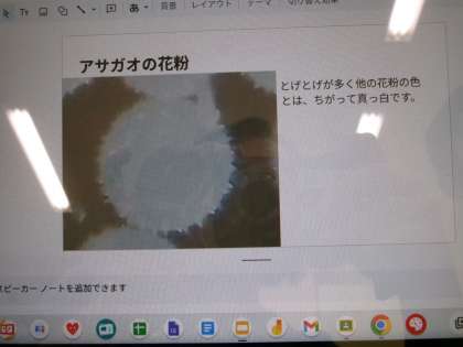 いろいろな花の花粉について学習し、スライドにまとめています。