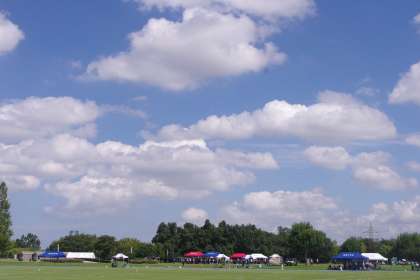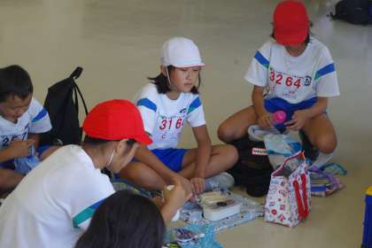 競技を終えて昼食です。すばらしい青空の下、すばらしい競技場での取り組みは、素敵な経験になりましたね。