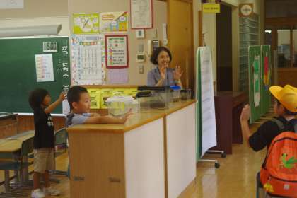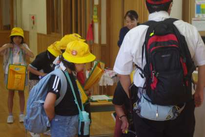 今日は、3年生の校外学習です。学校を出発する前、わくわく感でいっぱいの子供たちです。1,2年生に「行ってきます」と元気に言葉をかけていました。