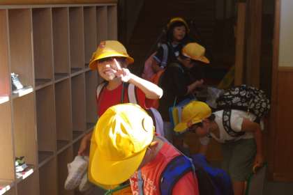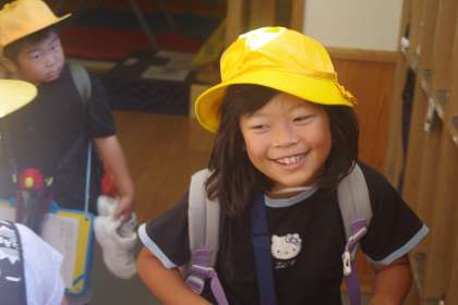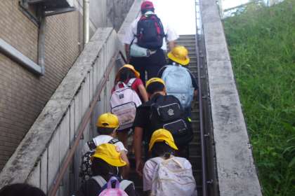 バス停に向かいます。今日は、天気もよく気持ちのよい日になりました。いろいろな経験をしてきてね。