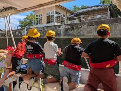 中島閘門は扉の開閉で上流と下流の水位差を調節する水のエレベーターです。自分たちの船の位置が低くなって、周りの壁がどんどん高くなっていきます。