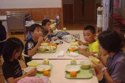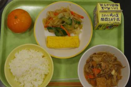 今日は、3年生が校外学習に行っているので、少しさみしい給食です。でも、いつも通りしっかり食べていました。