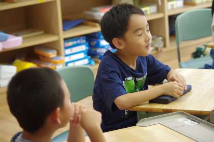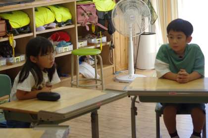 山田保育所の年長さんたちとの交流会に向けて、1年生の企画を話し合っています。