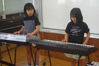 下学年の子供たちが、学級発表会の自主練習に取り組んでいました。