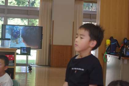 交流会に向けて話し合っています。年長さんたちのために、何ができるかをしっかり考えて話しています。