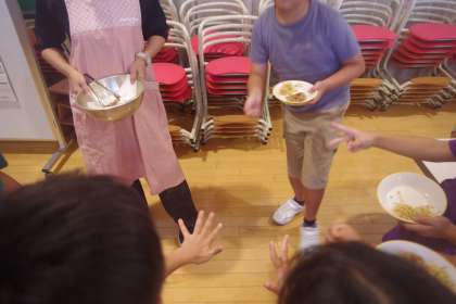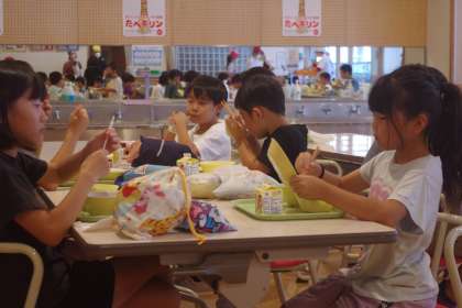 今日もみんなしっかり食べています。おかわりにもたくさんの子供たちがやってきました。