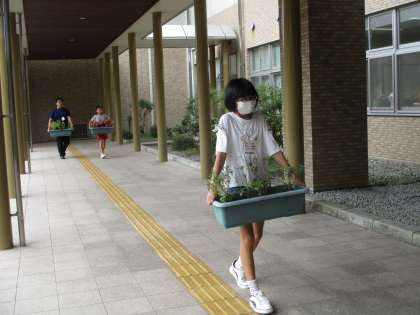 〇図書環境委員会 咲き終わったプランターの花を片付けています。
