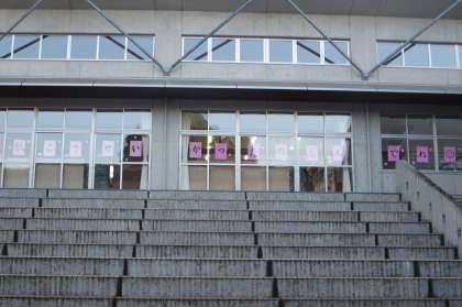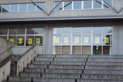 小学校の入学式の日。新入生の教室の窓から中学校の窓をを見ると、心温まるメッセージが貼られてありました。今年度もたくさん小中の交流ができるとよいです。