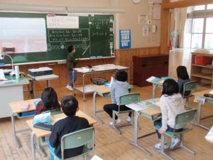 2年生と6年生の算数学習の様子です。自分の考えを進んで紹介しています。