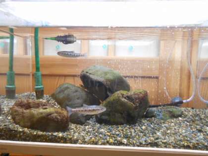 12月に卵からかえったサクラマス(ヤマメ)が、5cm程度に成長しました。お世話をしてくれていた児童のみなさん、ありがとうございました。