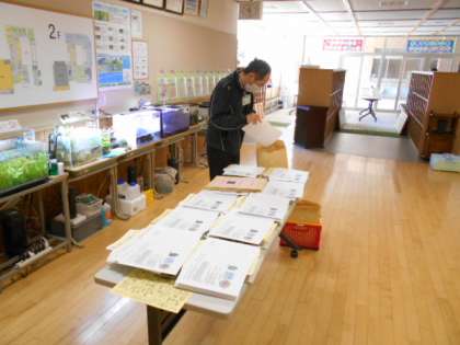 今日の午前中に、課題の配付準備を整えました。12:00〜16:30の時間に多くの保護者の皆様に来校していただき、スムーズに受け渡しが進みました。ありがとうございました。明日もよろしくお願いします。