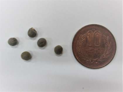 新しく始まった理科の問題です。写真にうつっているのは、何の種でしょうか。(大きさが分かりやすいように、十円玉といっしょにうつしました)答えは、来週、発表します。さあ、図鑑や本で調べたり、家族の人に聞いたりして考えよう。