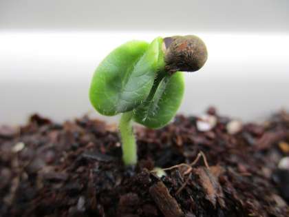 3年生学習コーナー「何の種でしょうか」の答えは、分かったかな?先生の家で、5月はじめから育てていたこの「なぞの種」が発芽(はつが)したので、しゃしんにとりました。ヒントになるかな?。