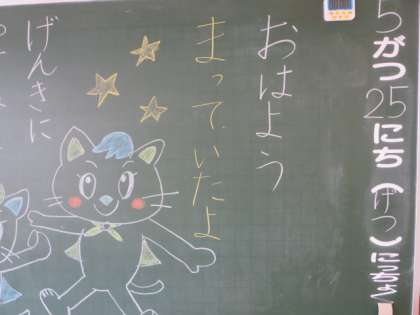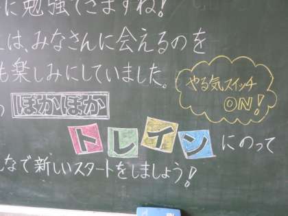 いよいよ来週から、子供たちが登校してきます。担任の先生方は、子供たちのために、黒板にメッセージを書いていました。どの文字や絵が、自分の担任の先生のものか分かりますか?