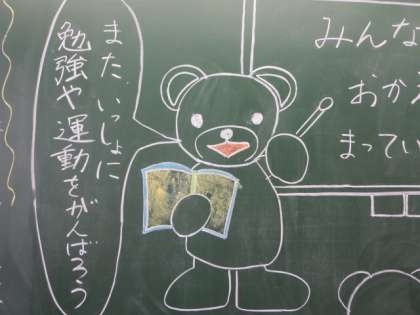 いよいよ来週から、子供たちが登校してきます。担任の先生方は、子供たちのために、黒板にメッセージを書いていました。どの文字や絵が、自分の担任の先生のものか分かりますか?