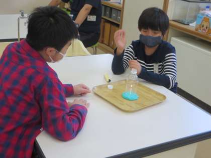 専科の先生の理科の授業が久しぶりに行われました。密閉された空気の中での、ものの燃え方の実験に取り組み、子供たちのわくわくした顔や驚いた顔を見ることができました。