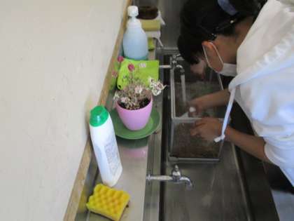 教室の水槽が汚れていることに気付いた子供たちが、休み時間に水槽掃除をしていました。きれいになった水槽で金魚たちが気持ちよさそうに泳いでいます。自ら気付き、行動できる姿がすてきですね。