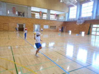 3年生は、4年生との合同体育で「ボール投げ」の学習をしました。ボールを頭の後ろに入れてから、腕をしっかりとふって投げることができました。
