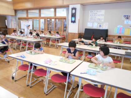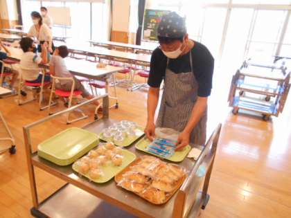 今日から19日までは、簡易給食です。手際よく配膳をして静かに食事をしました。