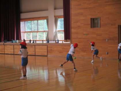 体育でボール投げの学習を続けています。体のひねり方、腰の使い方、ひじの高さ等に気をつけて投げる練習をしています。だんだん遠くへ投げられるようになってきました。