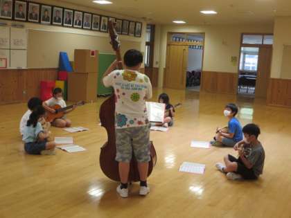 12日の長休みでは、5年生が互いに声を掛け合い、多目的スペースに集まって、マンドリンの自習練習を行っていました。よいと思うことを進んで取り組むことのできる素敵な5年生です。