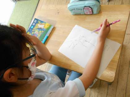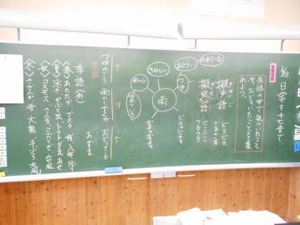 5年生は、身近なくらしの中で表現したいことを選び、俳句づくりに挑戦しています。「五・七・五」の言葉のリズムを楽しみましょう。