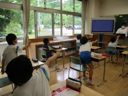 3年生になって3回目の外国語活動でした。英語で発音された1〜20の数を当てるゲームでは、子供たちは「これは8だ」「これは20かな」などとつぶやきながら、楽しく英語に親しみました。また、英語のじゃんけんでは、体を乗り出して活動しました。家庭でも一緒に楽しんでみてください。