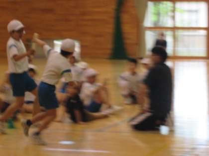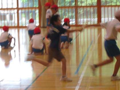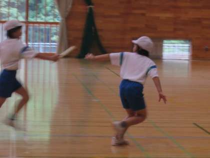 体育でリレーの練習を行いました。走りながらバトンの受け渡しができるようがんばっています。