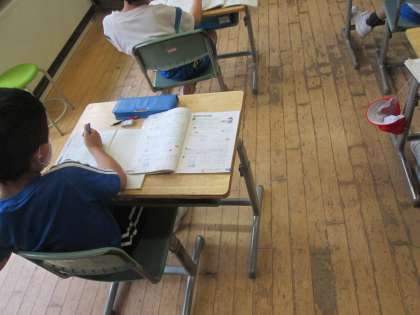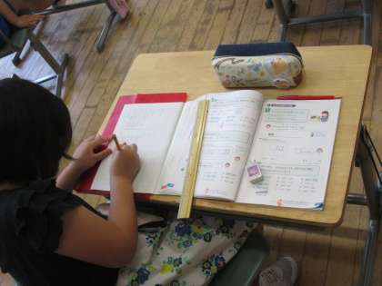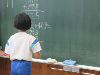 算数では、3けたの数たす3けたの数の筆算の学習をしています。大きい数でも今までに学習したように筆算ができることがわかり、一人一人で計算練習をしました。