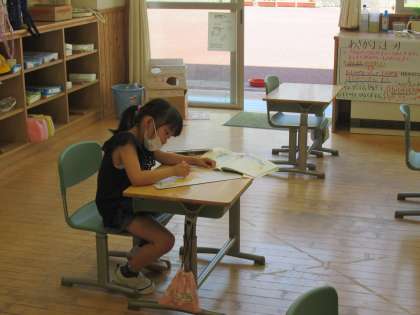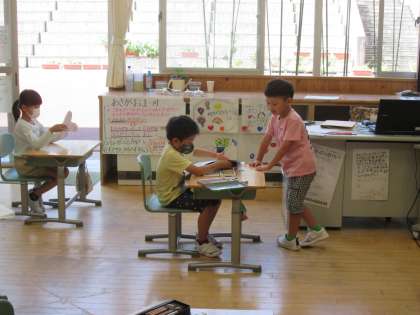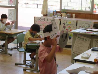 国語で「おおきなかぶ」の学習をすすめています。今日は、登場人物のお面をつくりました。この後、お面をつけながら音読して物語を楽しみました。
