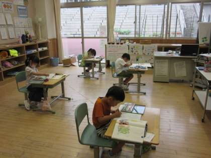 1年生は、国語科「おおきなかぶ」の学習でした。登場人物の気持ちを吹き出しに書いたり、役割演技をしたりしながら、物語の世界を楽しみました。