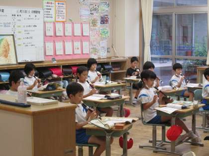 今朝は「音楽タイム」でした。上学年からマンドリンの音色が響いてくる中、3年生はリコーダーに親しんでいました。