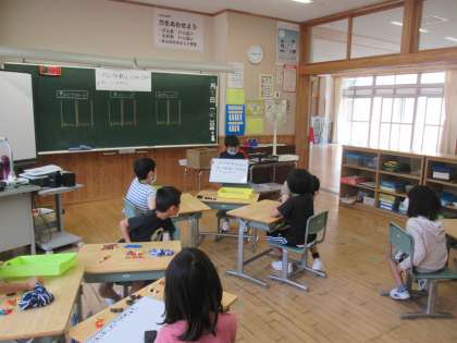 算数では、新しい学習に入りました。今日はブロックつかみゲームから始まりました。グループでどうやって数えるか相談しながらブロックの数を数えました。子供たちはきれいに並べたり、10のまとまりをつくったりするなど、いろいろな方法を思いついていました。