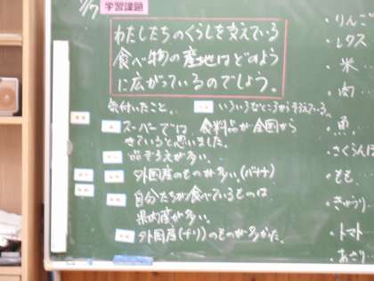 わたしたちが食べている食材が、全国各地から届けられていることを学んでいます。