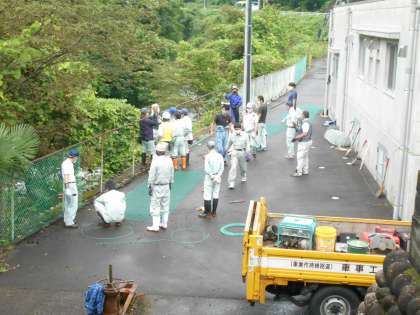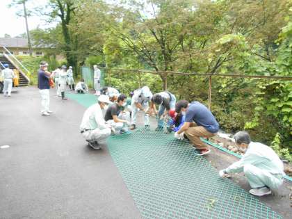 近隣学校の用務員の皆さんが、本校のフェンスを修繕する共同作業(職員研修)を行いました。みんなで協力をして手際よく作業することで、修繕作業がスムーズに進んでいました。