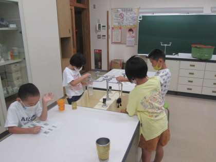 1dLますを使っていろいろな入れ物に入る水のかさを調べました。