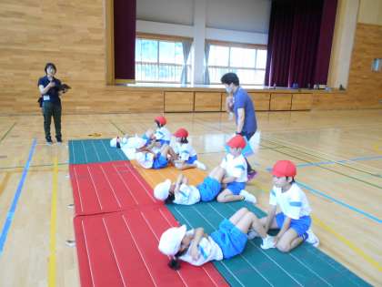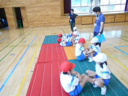 2年生は、上体起こしの運動能力テストに取り組みました。繰り返し行うことで回数が増える子供が多かったです。