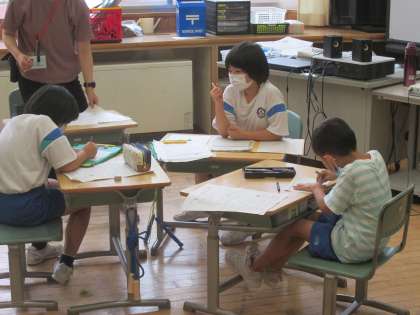 全校で地区児童会を行いました。始めに、密を避けて体育館に集まり生活安全委員会の児童から「楽しい夏休み」について目当ての確認がありました。その後、各地区ごとに分かれて今学期の集団登校の振り返りや夏休みの行事等について確認しました。