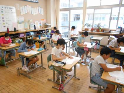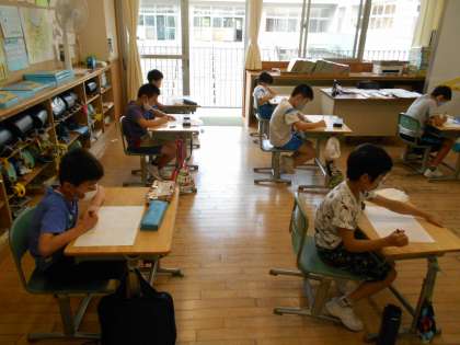 1時間目に4,6年生は、国語や算数の「1学期末 学習のたしかめテスト」に取り組みました。