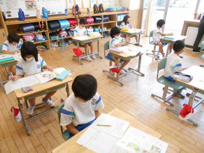2年生は、道徳の学習中です。登場する動物の立場から考えてワークシートに書き込んでいました。
