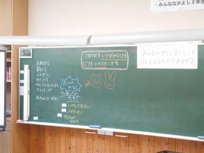 2年生は、道徳の学習中です。登場する動物の立場から考えてワークシートに書き込んでいました。