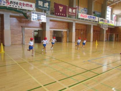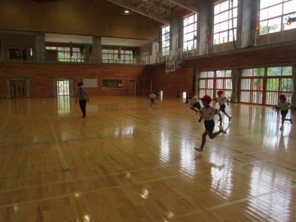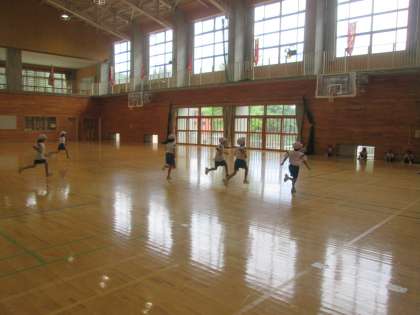 今日は、20mシャトルランに挑戦しました。20m間隔に引かれた線から線までを合図音に合わせて走り続けました。1年生も2年生に負けないくらい精一杯がんばっていました。