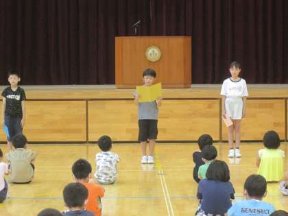 終業式の後、各学年の代表児童が、1学期を振り返り、がんばったことを発表しました。