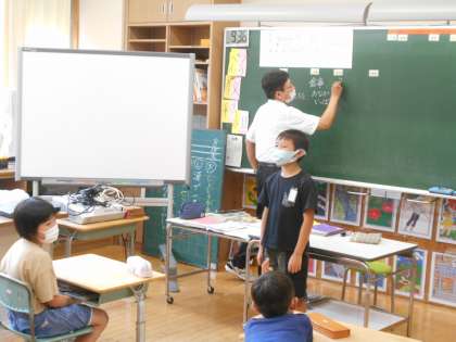 教室では、夏休みに楽しかったことや、がんばったことなどをお話している様子が見られました。