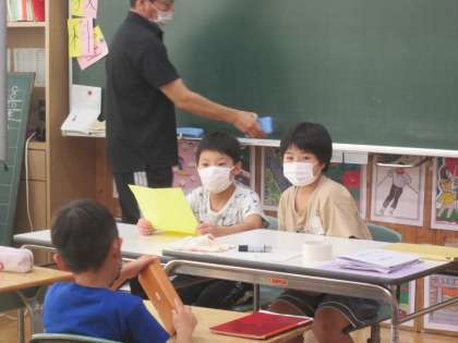 代表委員会で6年生より運動会のスローガンについて3つの案が提案されました。代表委員会に参加した児童が、クラスのみんなに提案されたことを伝え、学級会で3年生の意見を話し合いました。
