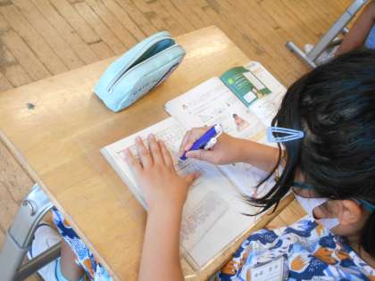 5年生は、四角形の内角の和を求める方法を考えました。前時に三角形の内角の和を求めていたので、その既習経験を活用して考えていました。